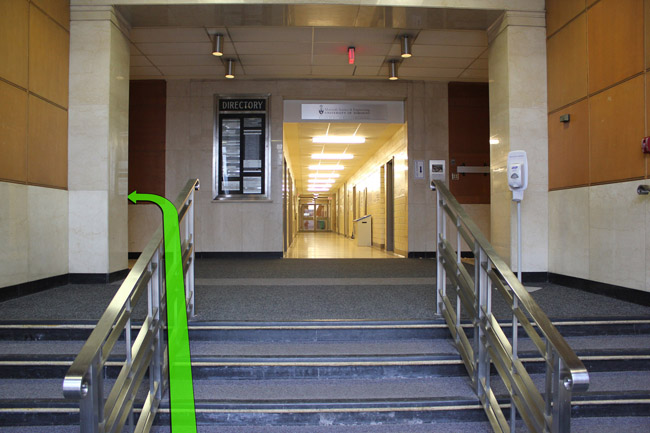 Walk from College Street towards the right entrance of the Wallberg Building.