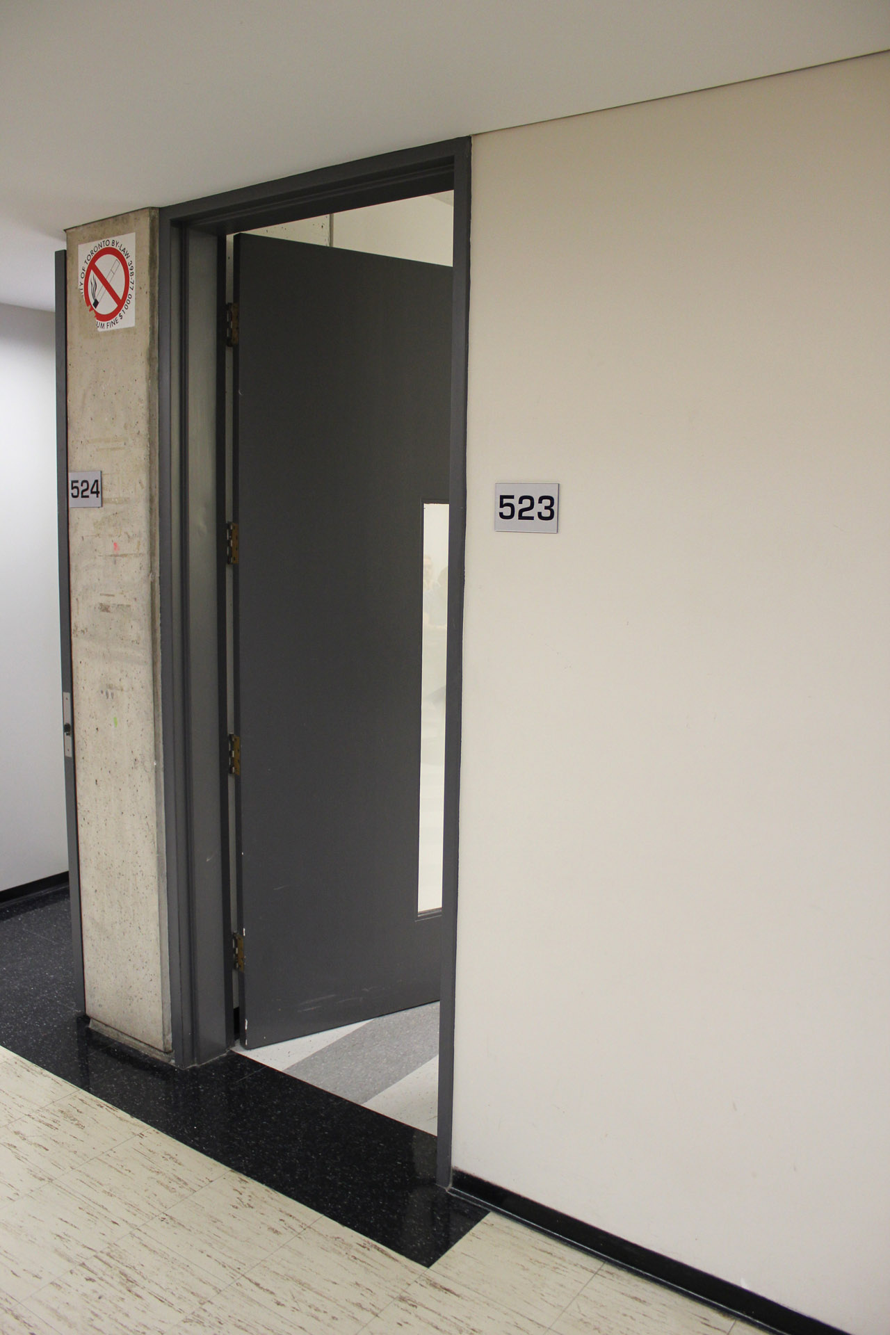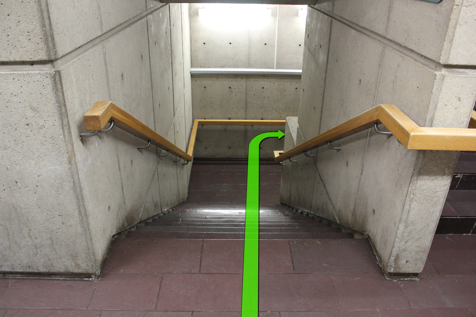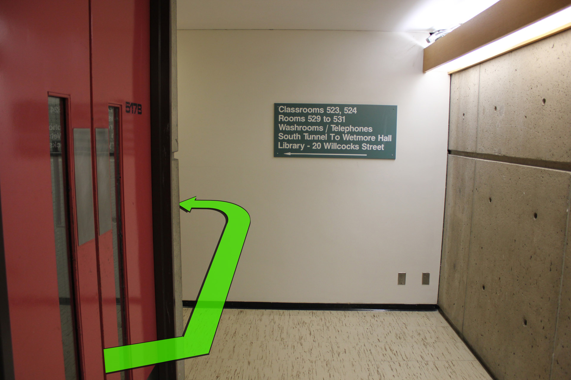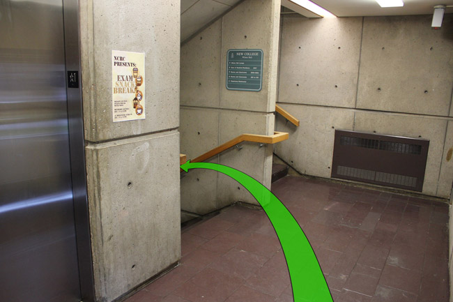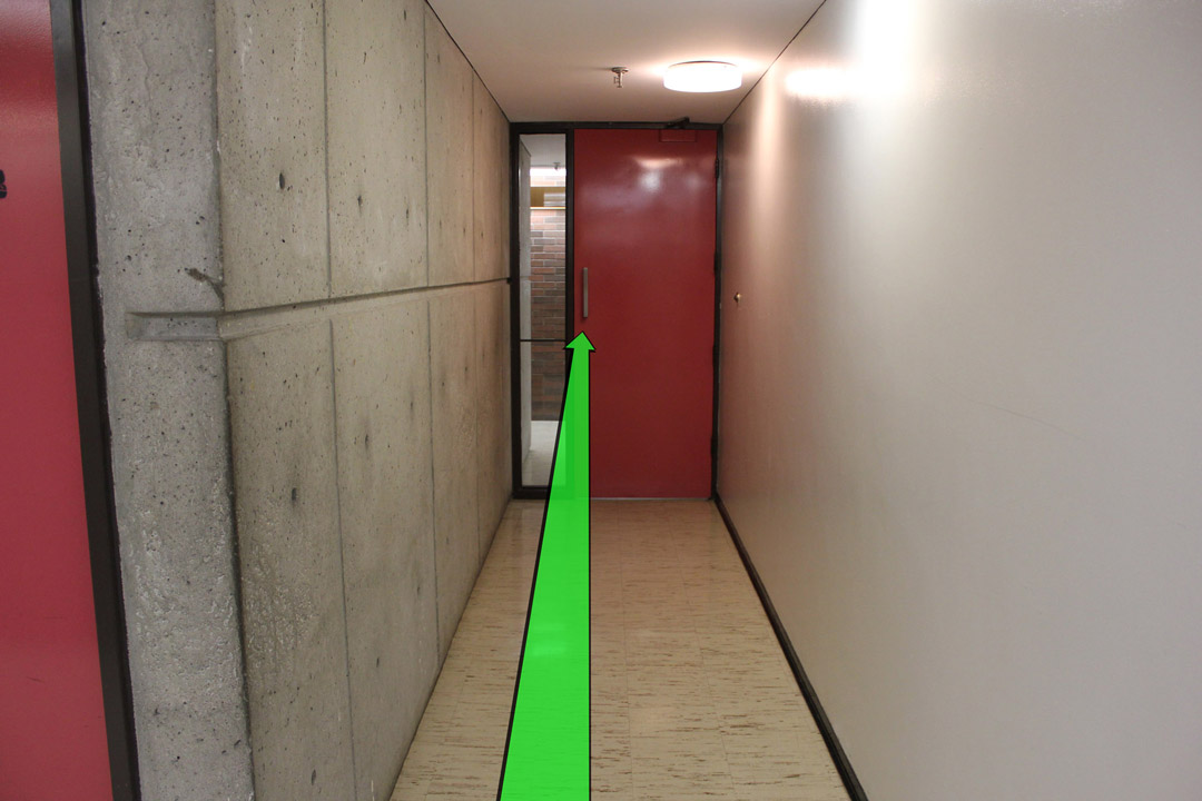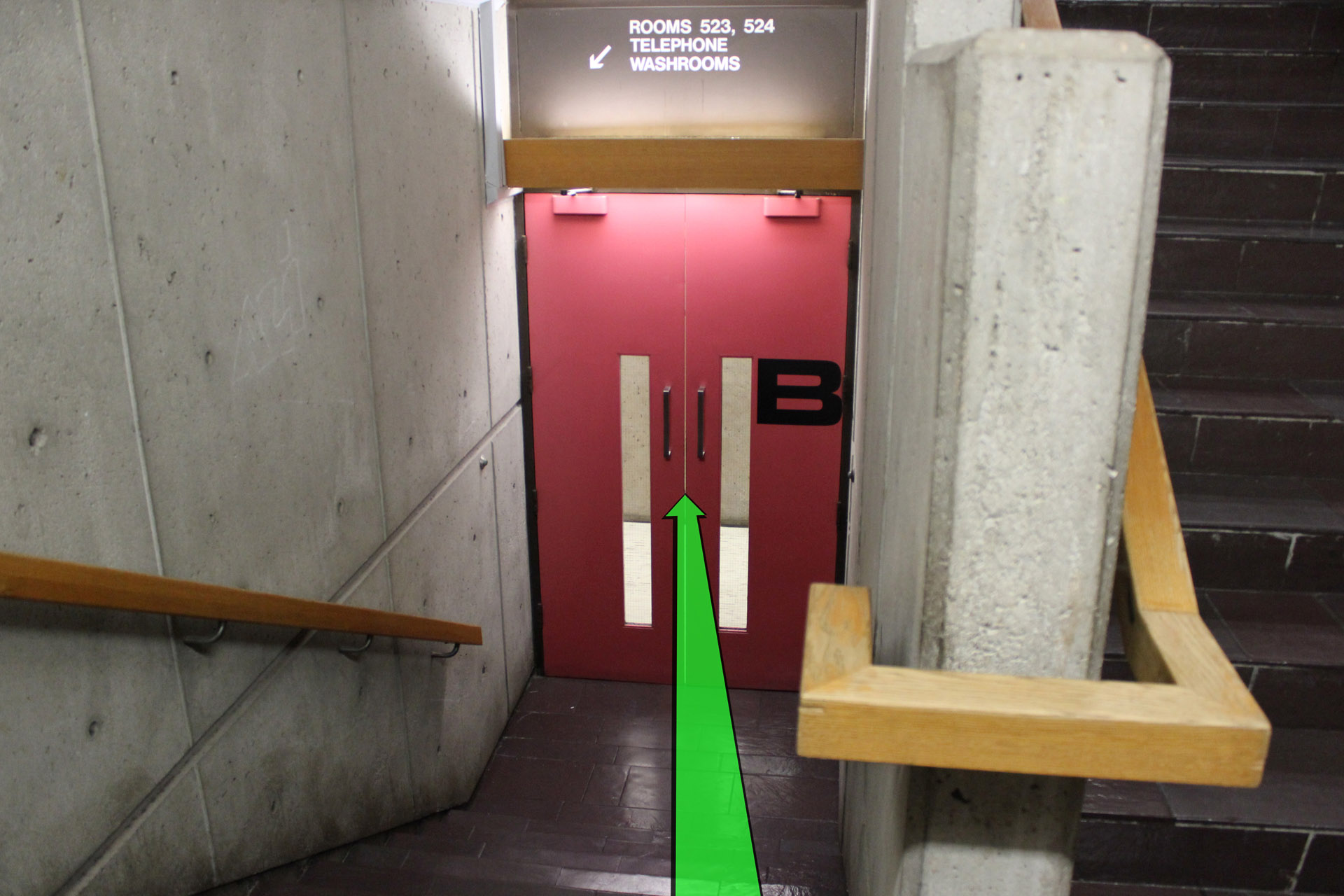 On entering the building walk towards the stairway doors on your right, enter the stairway.