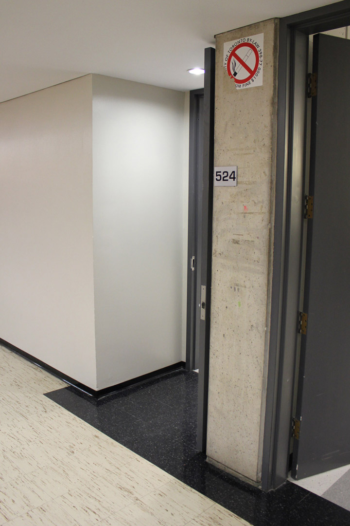 On entering the building walk towards the stairway doors on your right, enter the stairway.