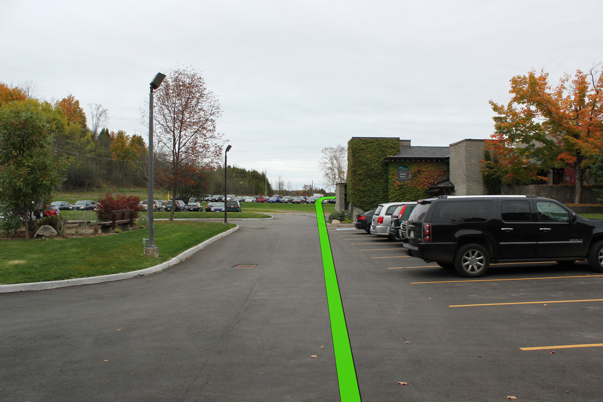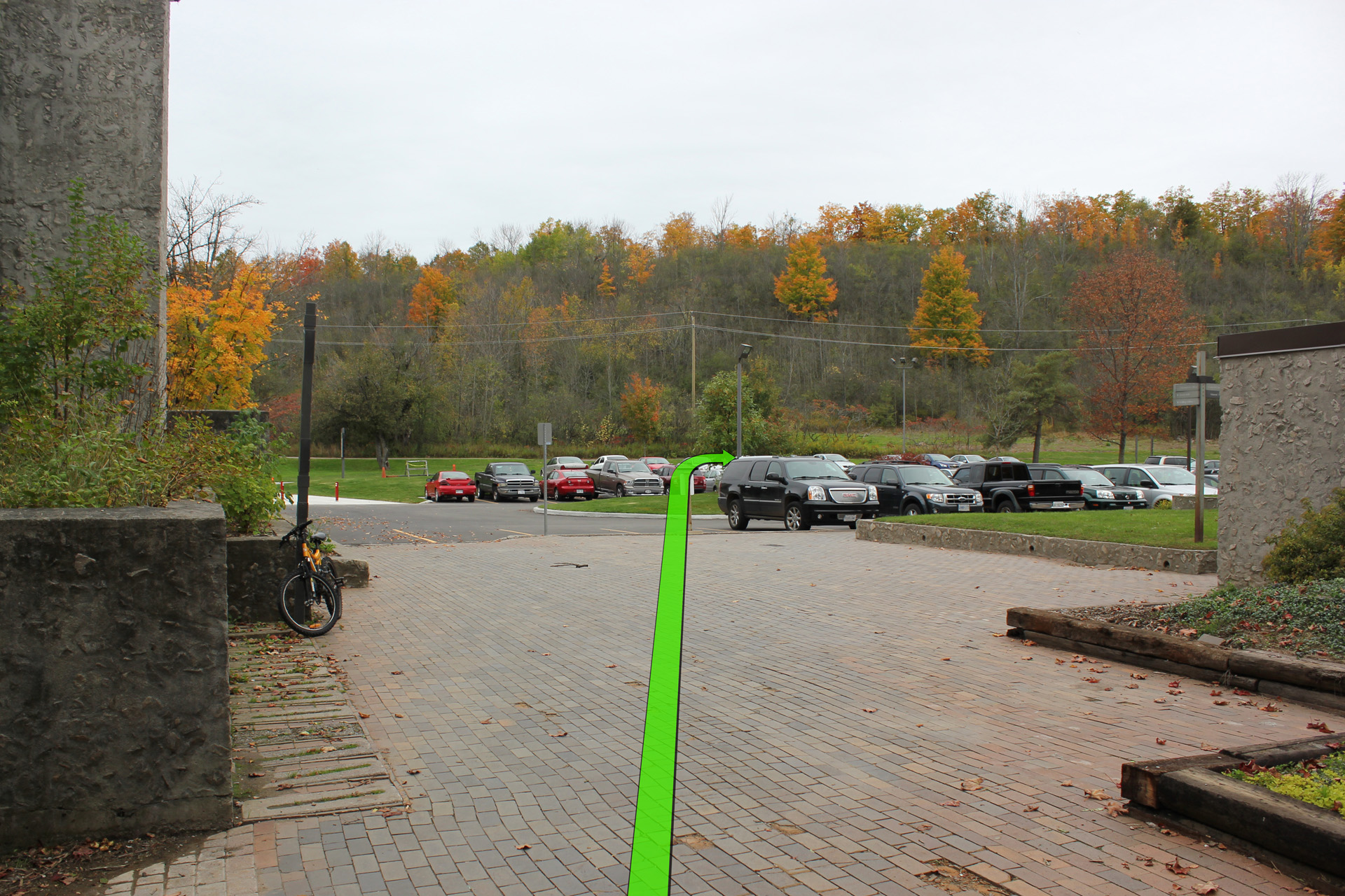 Walk straight and take right turn at the parking lot.