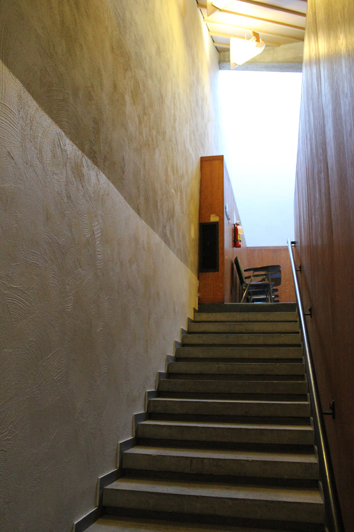 Go straight ahead, down the steps.