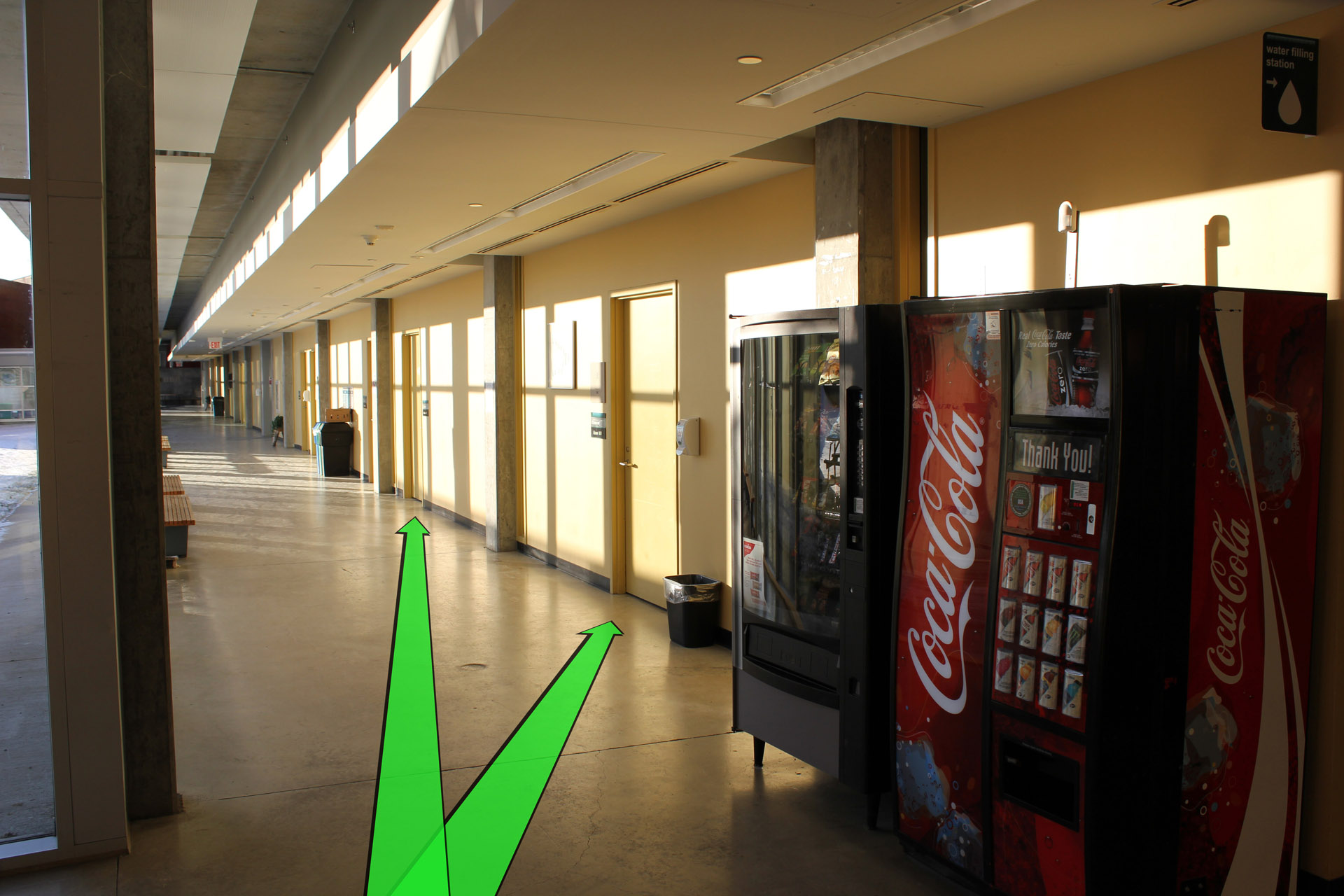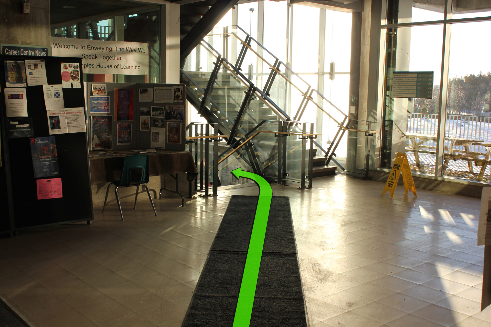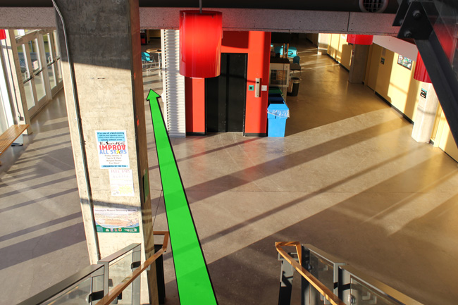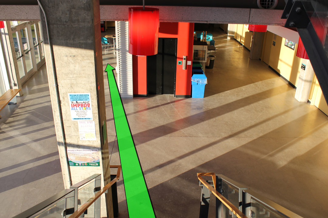After entering the building, walk downstairs to the first floor.