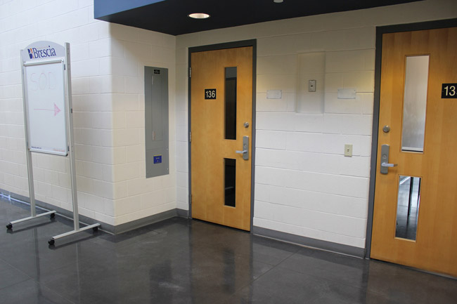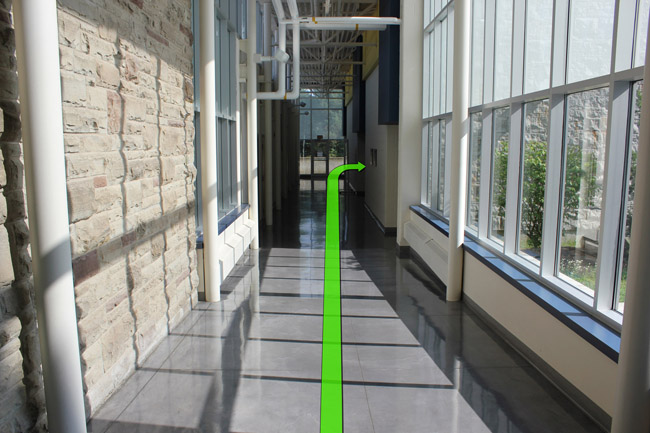 Walk from the parking lot towards the entrance of the Mother St. James Building.