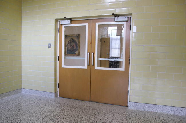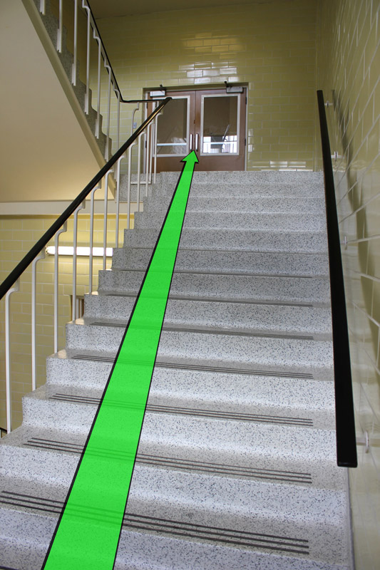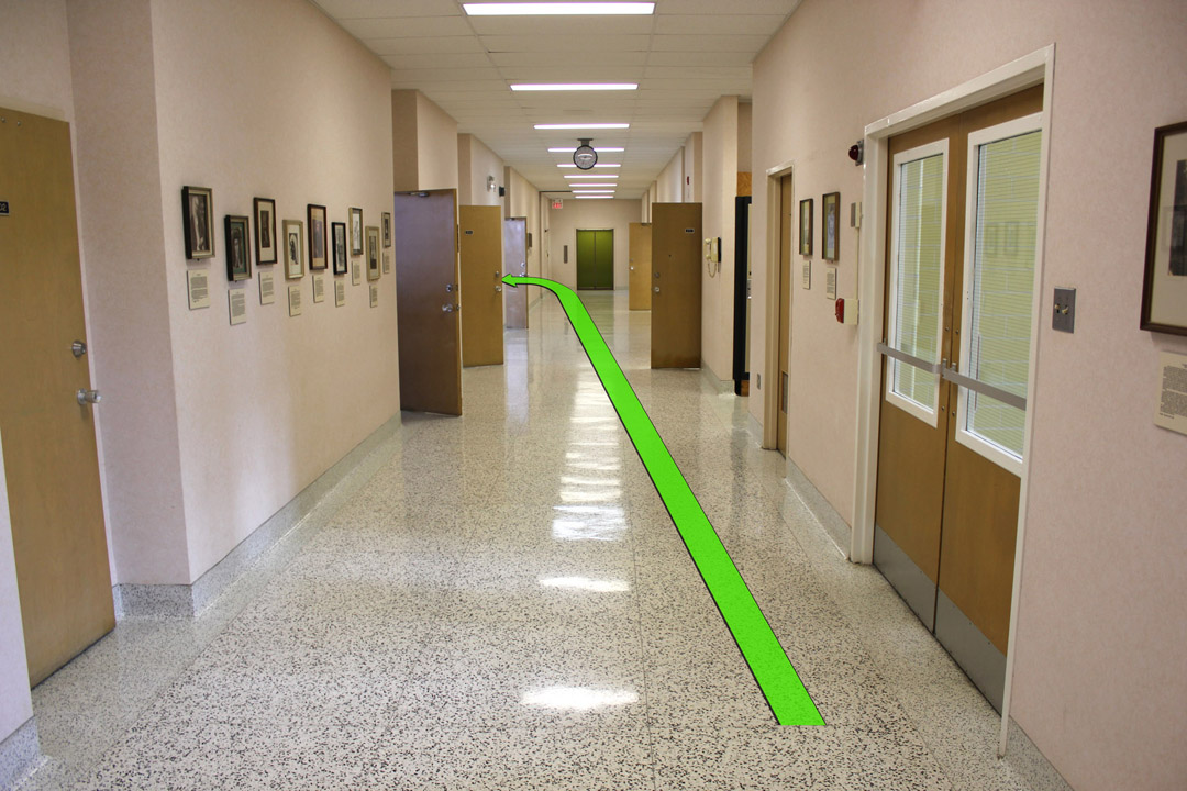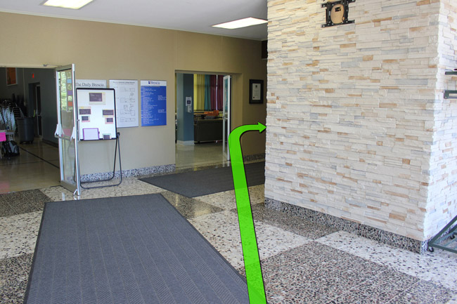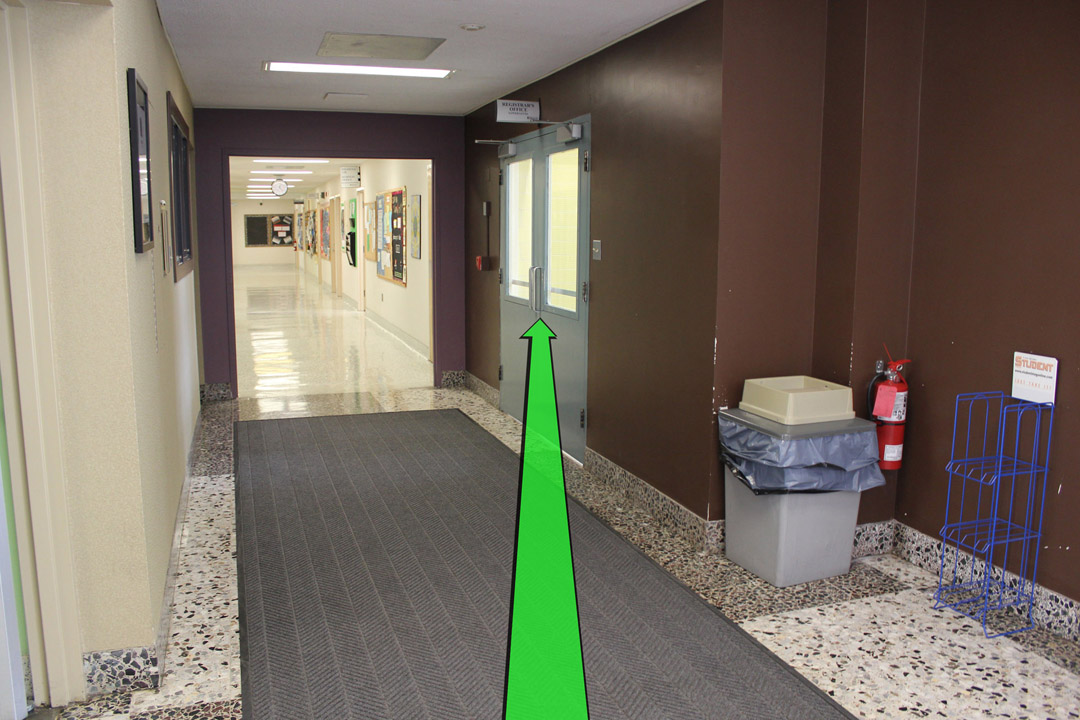 On entering the building walk straight and take a right turn at the hallway up ahead.