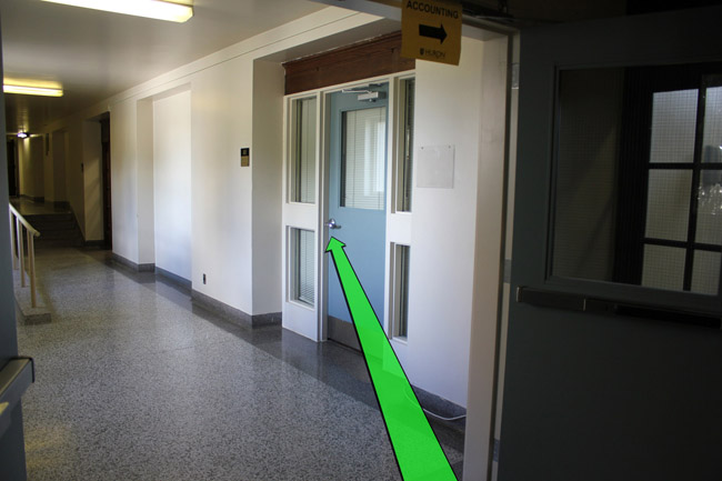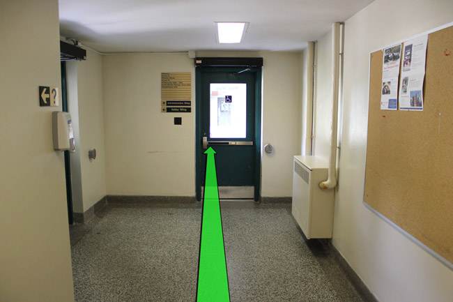 Walk from the parking lot off Western Road and take a right turn at the Huron University College sign up ahead.