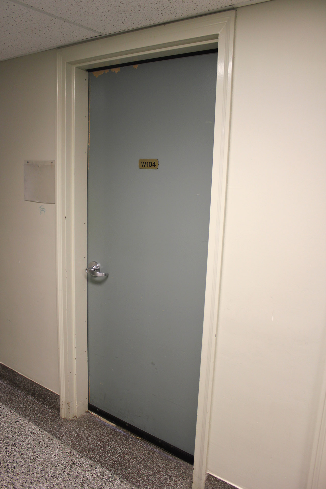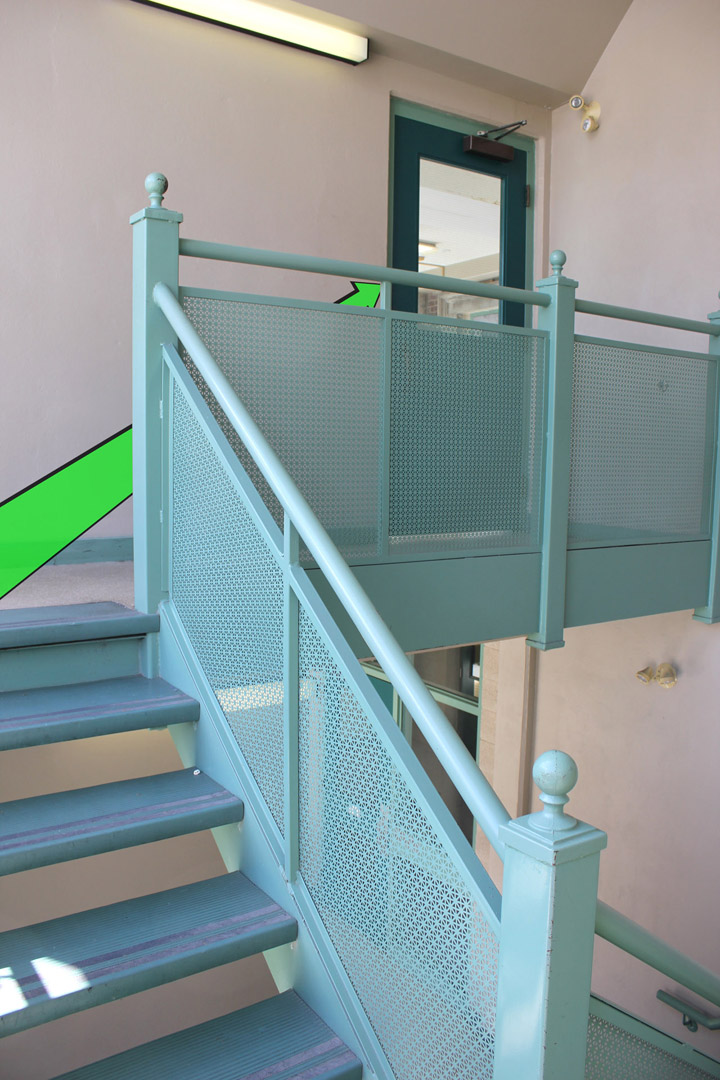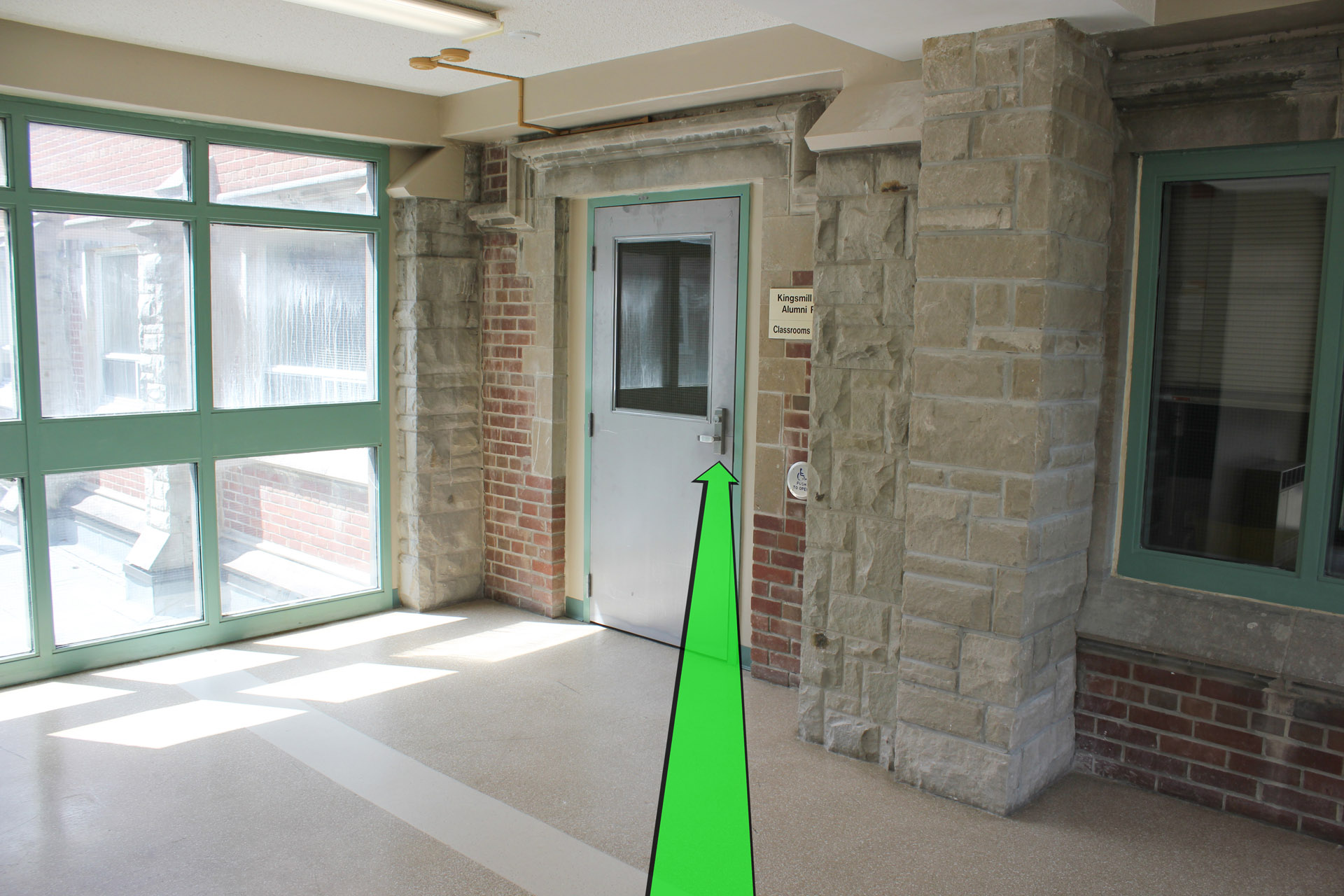 Walk straight down the hallway and take a left turn at the end of the hallway.