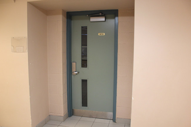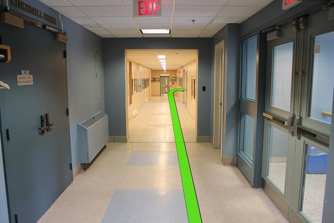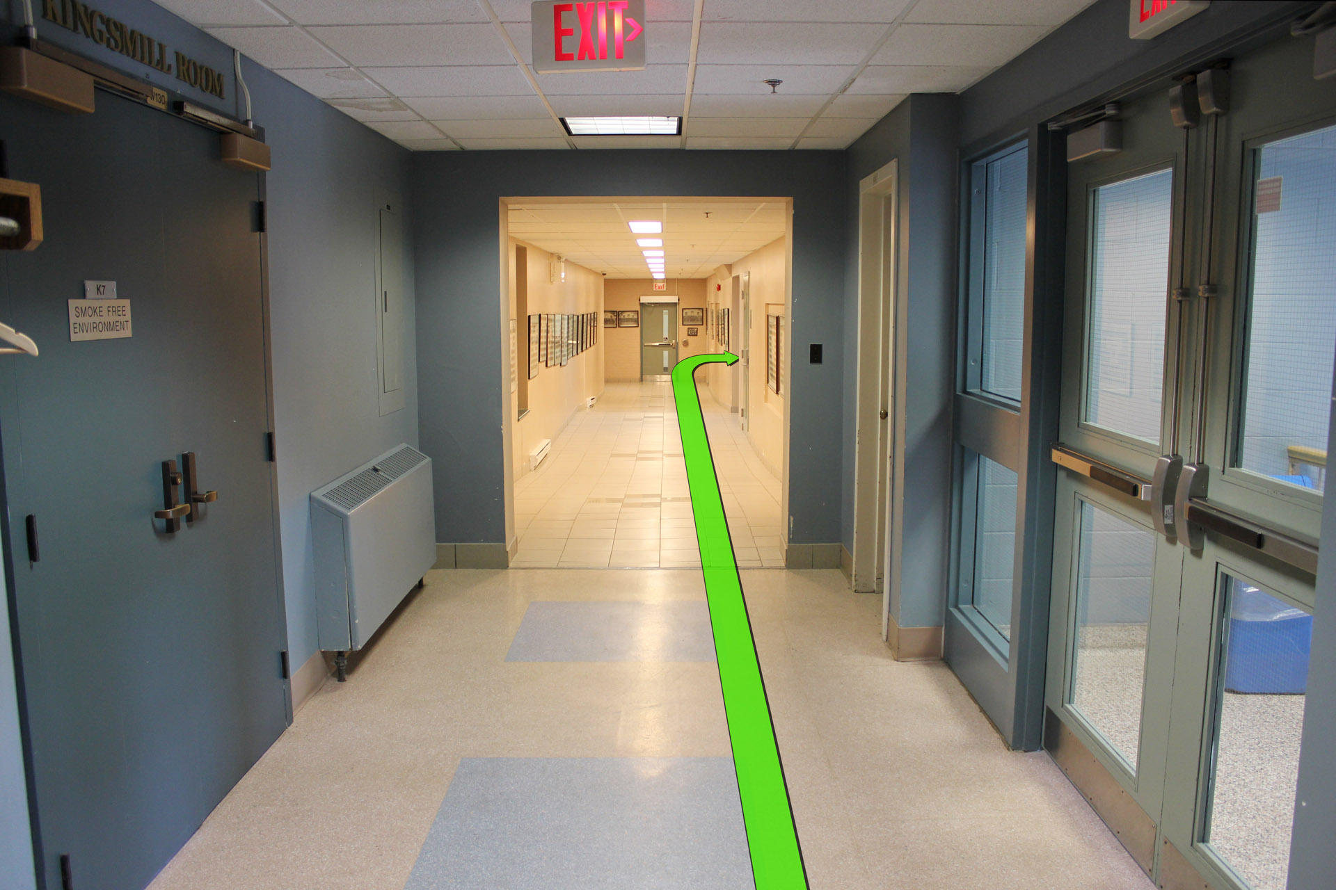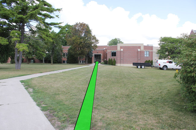 Walk from the parking lot off Western Road and take a left turn at the Huron University College sign up ahead.