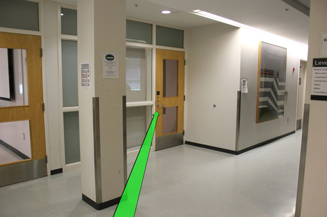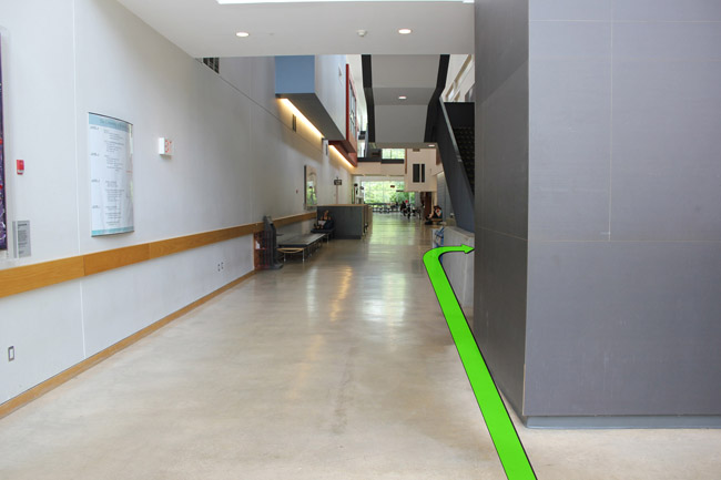 Walk up to the 2nd Floor and take a right turn down the hallway.