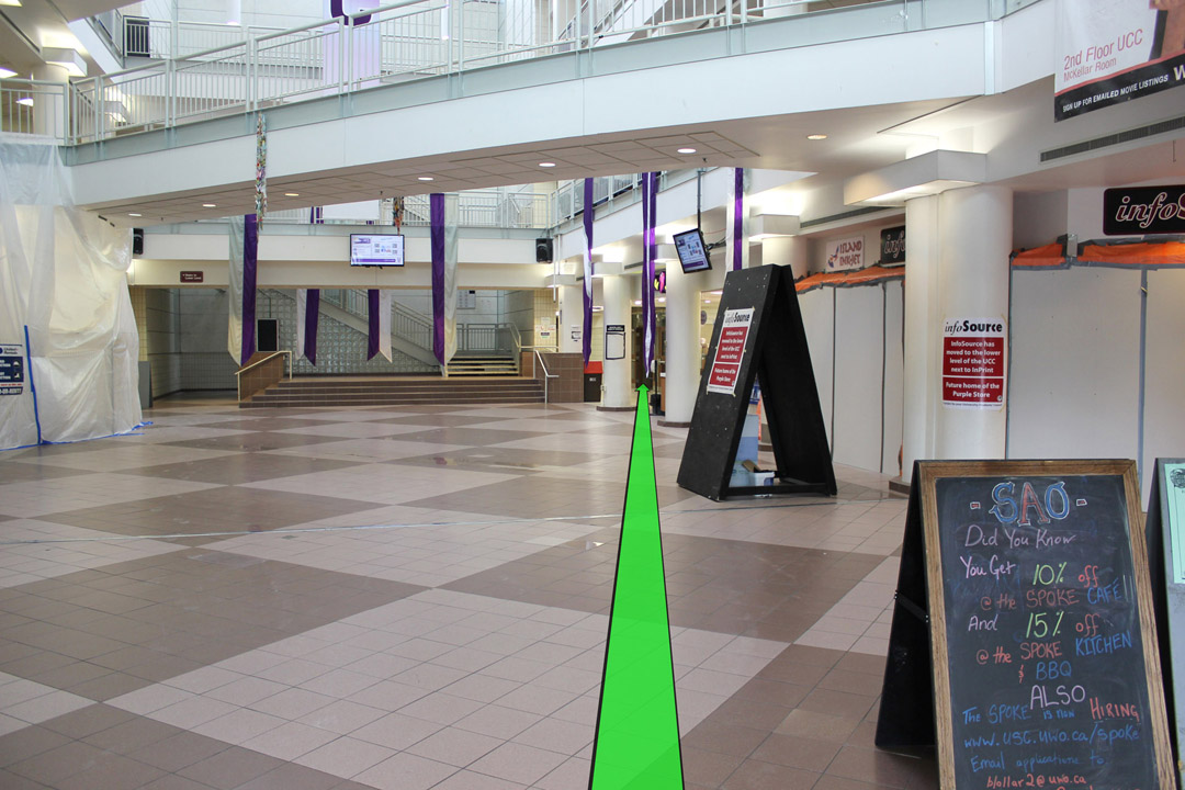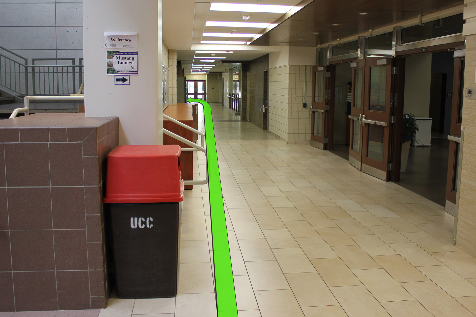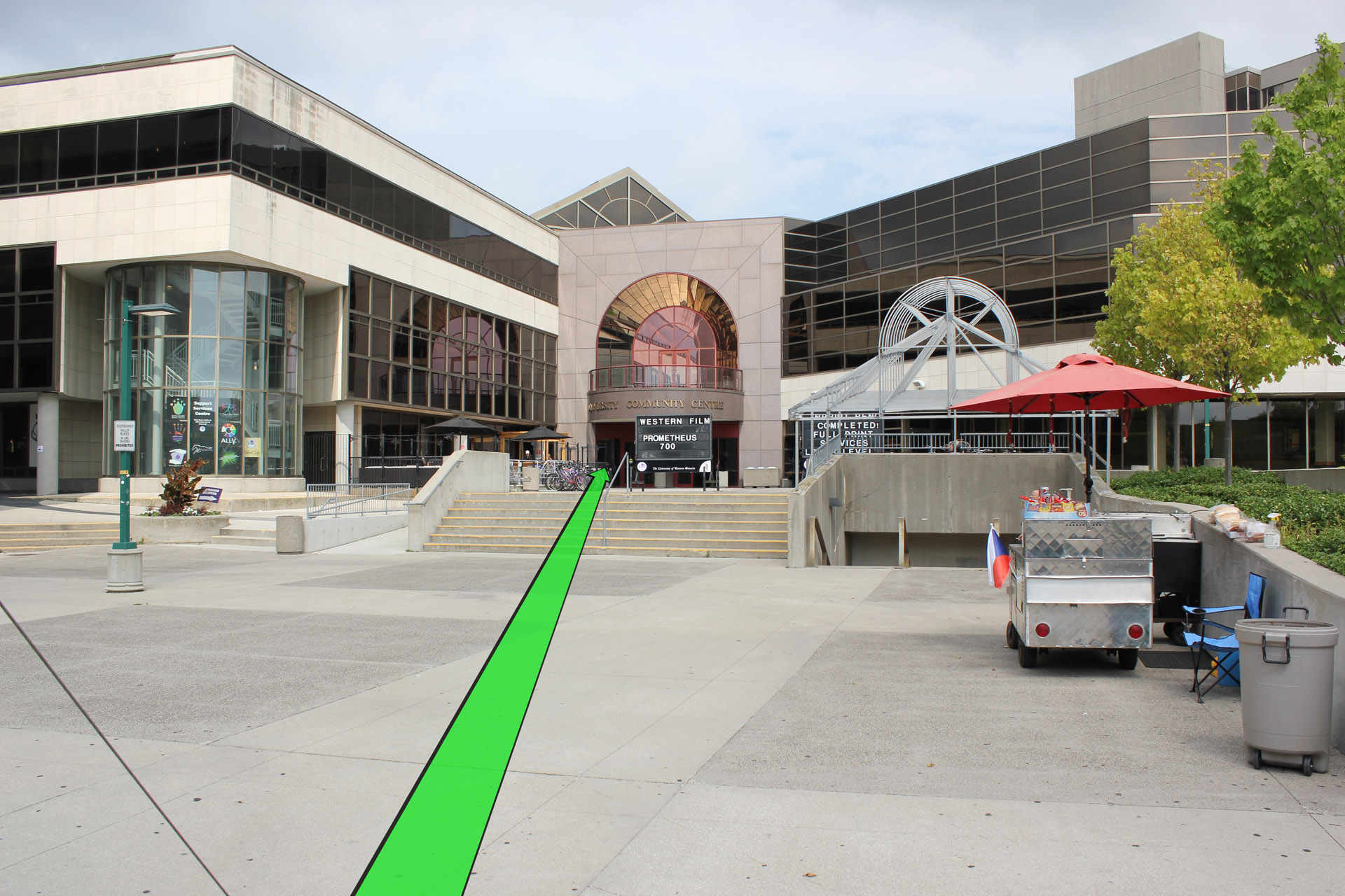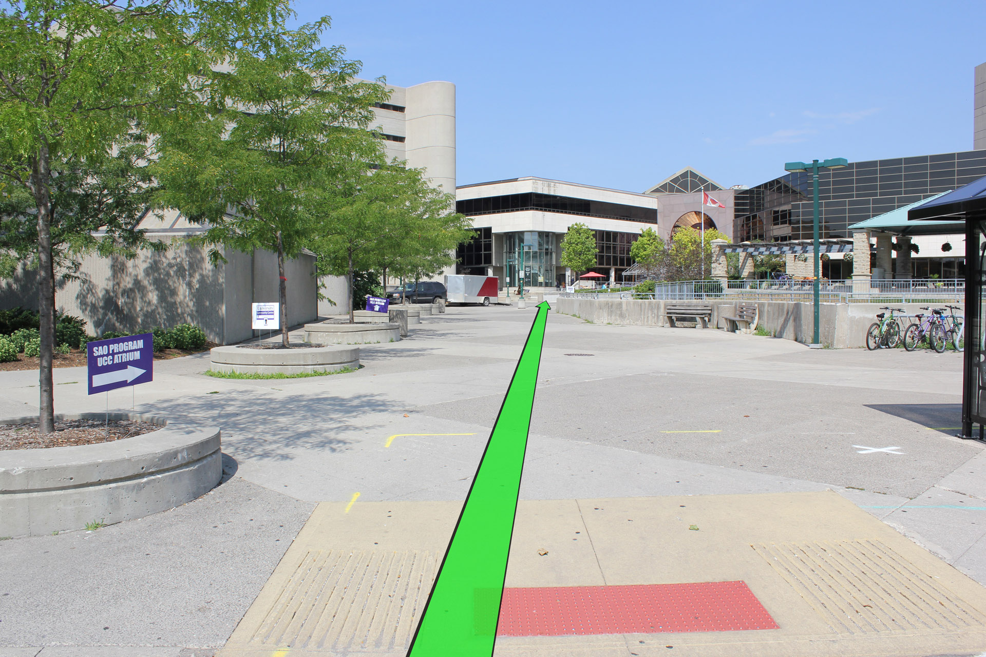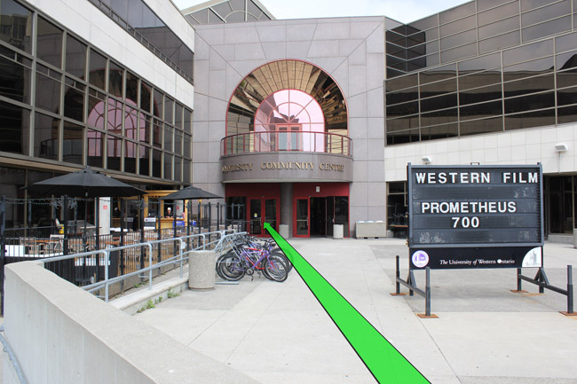 Walk from Oxford Dr. to the entrance of the University Community Centre.