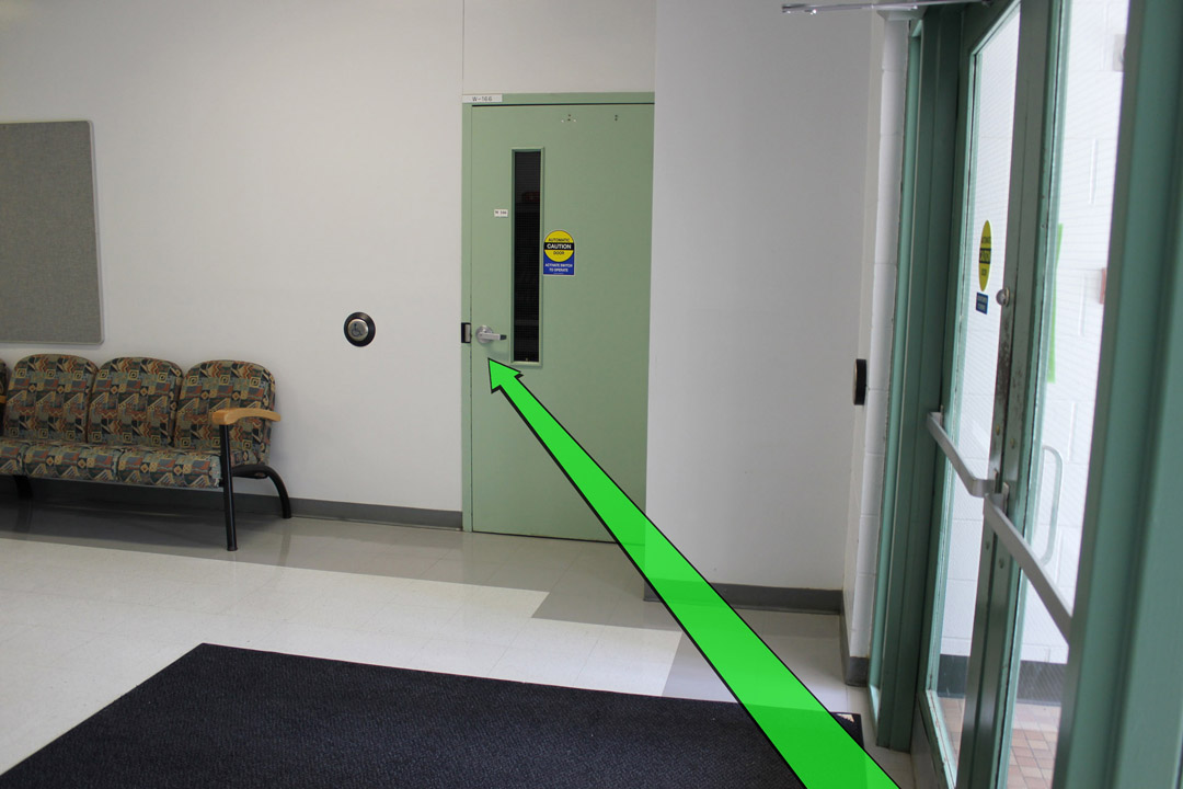 Walk from Epworth Ave. towards the entrance of Monsignor Wemple Hall.